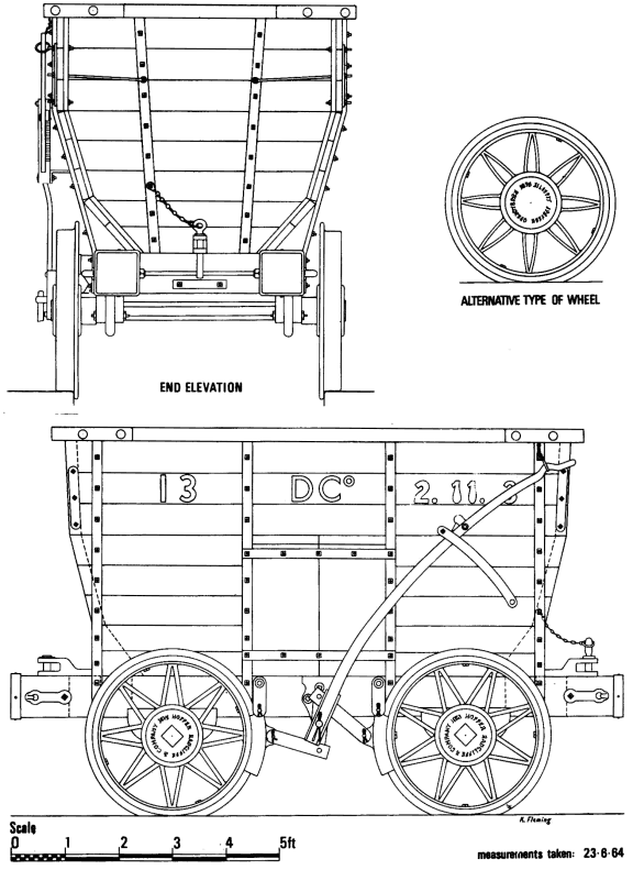 The chaldron wagons at Seaham Harbour have always fascinated me, and when I called in July 1965 I took the opportunity of studying them closely. They are fundamentally the same as those in use on Tyneside in the 18th century, although the Seaham examples are rather more refined in design and more "modern" in construction.
