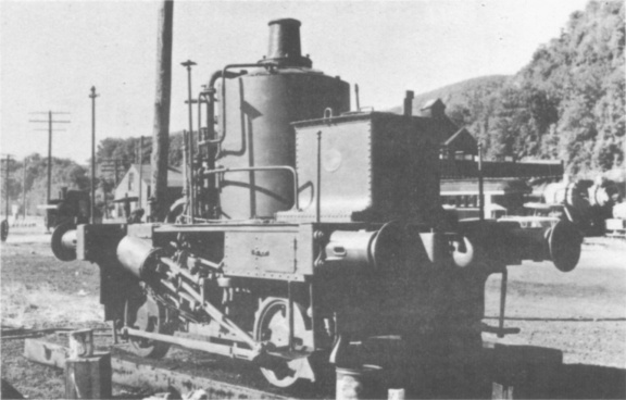 The vertical boilered 0−4−0 tank, St. Leonard 466 of 1877, was presumably brought from Europe. Over the left buffer is a Tralee & Dingle locomotive. They were at Bellows Falls, New Hampshire, in company with some other thirty locomotives. The owner is a wealthy eccentric and in 1964 had over seventy locomotives at various places.