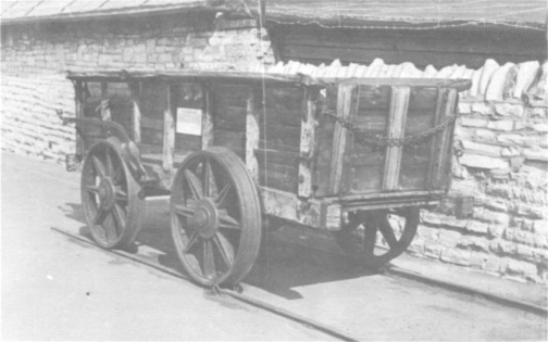 This vintage wagon is preserved near to the Shakespeare Memorial Theatre in Stratford-on-Avon, and was presented to the town by the Great Western‘ Railway. It was used on the tramway between Stratford and Moreton-in-the-Marsh which was built in 1826, closed in 1881 and lifted in 1916. Faded lettering on the side of the wagon reads "THOMAS HUTCHINGS, NEWBOLD LIME WORKS". (John Rumsey supplied the photograph and information.)
