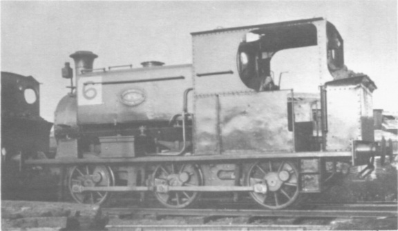 My photograph of No.6 shows her appearance during service with Samuel Williams and comparison should be made with the official photograph reproduced on page 17 of RECORD 1. Reference is made on that page to the combined leading sandbox and splasher fitted about 1889 and this is plainly visible in the picture of No.6. Other similarities of special significance are the cab side sheets in two portions, and the shape of the saddletank together with the extra handrails on the top. In both, the cut out portions of the frames are parallel to the angle of the motion plate and not vertical.