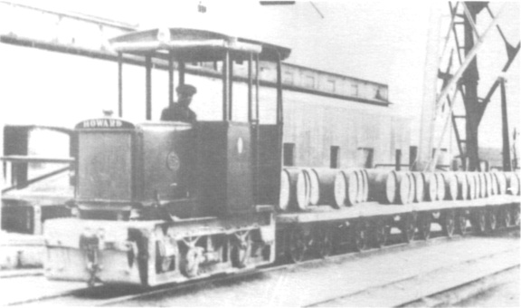 Fig.6 Howard 'H" type locomotives could be supplied with four cylinder petrol engines developing 30/48hp. This example was in use at a works (Bevan's Works?) of Associated Portland Cement Manufacturers Ltd., in Kent.
