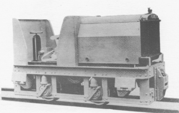 Fig.4 A narrow gauge chain driven "Planet" locomotive based on the Motor Rail "Simplex" type and produced from 1926 or 1927. It was fitted with a 15/25hp Ford model "A" petrol engine, and the constant mesh gearbox gave speeds of 4 and 7 mph. Note the transversely mounted engine.