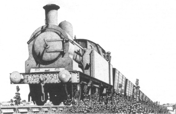 Most of the larger colliery railways in north-east England had locomotives of a larger size and power than normal industrial types, but these were nearly always second-hand and mainly from the North Eastern Railway. This was not the case with the Earl of Durham's Lambton Railway which, out of the fifty or so locos obtained before 1910, had only one which was not new. With the coming of the economic depression in the late 'twenties this policy changed, and one of five locos purchased subsequently from the Great Western Railway is shown above. The 0−6−2 side tank type was not unknown to the Lambton, Hetton & Joicey Collieries as Kitson and Stephenson had supplied some previously. No.53 was built by the Taff Vale Railway at their Cardiff West Yard Works (works number 302 as No.26 of class "O"; the driving wheels were 4ft 6½in, with 3ft 8¾in trailing wheels and 17½in by 26in cylinders. In 1922 it passed into GWR stock as No.448 and was sold in February 1930 through the agency of R.H.Longbotham to L H & J C where it became No.53. A new cab with tapered sides was fitted to allow it to work through the short tunnel at the Sunderland end of the line, and in this form No.53 bore a striking resemblance to the earlier 0−6−2 tanks. With recent pit closures and subsequent decline of the Lambton Railway, the inevitable end came for No.53 in the Philadelphia graveyard in October 1966, leaving the now famous GORDON as the only remaining Taff Vale locomotive.