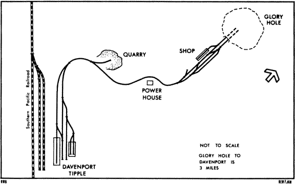 In 1923 the Company purchased from the Alaska Gastineau Mining Company an entire narrow gauge mining railway, located in Alaska, which was moved to California to replace the standard gauge equipment at Davenport. The standard gauge right of way was used but many of the bridges were filled in. The new line was laid with 60lb rails to three foot gauge.