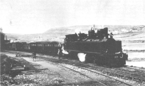 The working book allows 6 hours 43 minutes for the 130km between Sagunto and El Puerto de Escandón (the word "Puerto" here relates to a mountain pass, not a port) but only 5 hours 12 minutes in the reverse direction. The railway climbs continually to Puerto, then drops slightly to Teruel, before a final climb to the mines at Ojos Negros. During the Spanish Civil War there was much bitter fighting around Teruel, and for a long time the opposite ends of the railway were in the possession of opposing forces! The highest point reached, at Collado de las Fuentecillas, is 4107ft above sea level.
