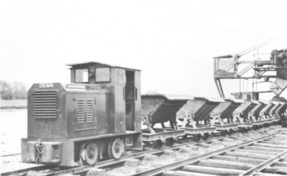Lunenburgerwaard Brickworks 700mm gauge Diema diesel 1913 of 1956 is a less handsome successor to the Henschel well tank it replaced. Photographed on 9th May 1967. (R.J. Brettschneider)