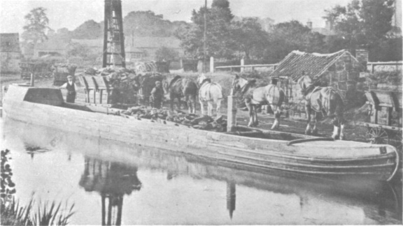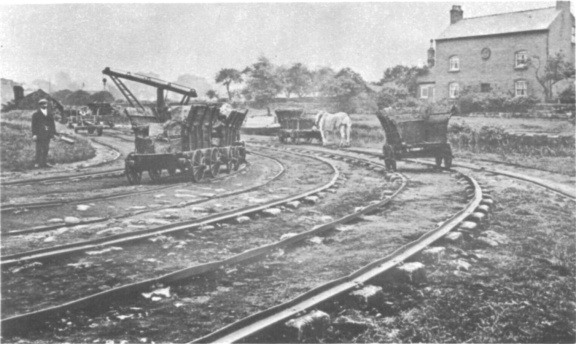 Little Eaton Wharf. Note the crane, open ended wagons, shunting horse and rails on stone sleepers.