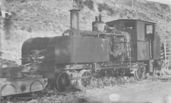 Avonside 0−6−0 saddle tank 1141 of 1876, still carrying its NZGR numberplate 2, at the Charming Creek Coal Company, Ngakauwau, about 1958. This was the last NZGR "F" class loco to be sold (in 1954) to a private owner. (B. D. Whebell)