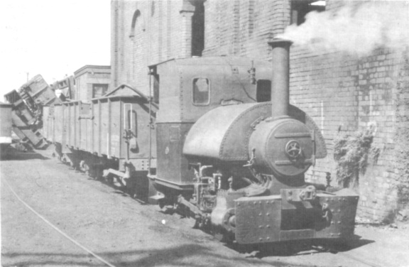 Bagnall 1857 of 1909 shunts wagons to the tippler at Christchurch Gasworks in March 1960. Owned by the Christchurch Gas Coal & Coke Co. Ltd. (B. D. Whebell)