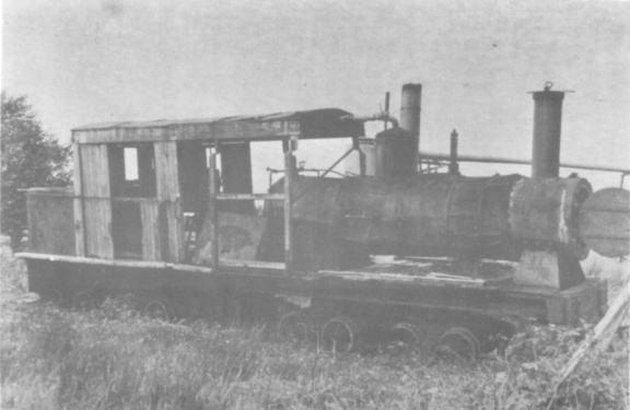 A most unusual locomotive at McCallum & Co, Longbush, Southland, which is said to have been built by Thos. Robinson, Rochdale, England! Note the main steam pipes from the front of the smokebox. (collection J. McNamara)