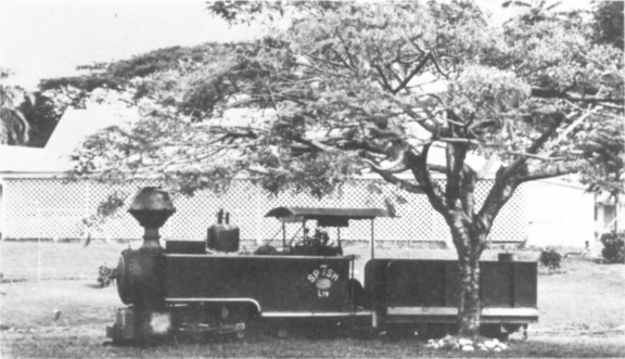 Fowler 10656, a 2ft 0in gauge 0‑6‑0 tender loco, was delivered to the Colonial Sugar Refining Co Ltd in Fiji in 1905. Photographed at Lautoka in December 1965 as number 7 of South Pacific Sugar Mills Ltd. (B.D. Whebell)