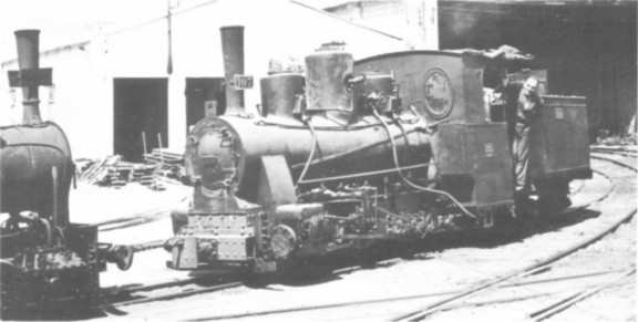 Two of the 0−6−0 tender engines. 102 (on the left) and 103 are Jung 605 and 606 of 1902, although carrying A. Koppel plates. (R. A. Fox)