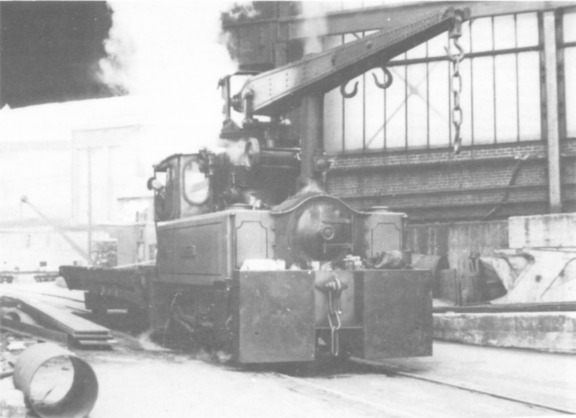 HENDON, one of the fleet of crane locomotives operated by Doxford’s shipyard at Sunderland, shunts the lower yard on the banks of the Wear one morning In June 1964. This engine was one of a pair originally ordered by the New Russia Co from Hawthorn Leslie in 1918 (works Nos. 3327 and 3328). The order not being fulfilled, parts were stored until utilised in 1940 by their successors, Robert Stephenson & Hawthorns, to form BOXER and HENDON (works Nos. 7006 and 7007). (R. E. West)