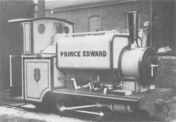 Hunslet’s album of official Kerr Stuart photographs contains these two of PRINCE EDWARD (84 of 1894) which is thought to have been built originally as an 0−4−2ST (upper) but shipped as an 0−4−0ST (lower), Notice the different styles of lettering and lining out, and the most unusual shape of the worksplate.
