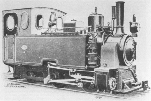 As far as can be seen, Arthur Koppel bought his first locomotive from Krauss of Munich in 1885 (Krauss no. 1626). It was a small 0‑4‑0 well tank of 600mm gauge. Subsequently we find his name on the lists of many a locomotive manufacturer, even American. For example nos. 93 and 94, the two 0‑4‑2 saddle tank locomotives of South African Railways class NG2, carried plates on the cabsides with the inscription: ‘DICKSON Manf’g Co., Sole Agents for South Africa Arthur Koppel, Johannesburg’. This raises the question as to why Koppel did not buy his locomotives principally from Orenstein & Koppel once this firm had started to build them. The answer is to be found in the history of A. Koppel whose main interest centred in the sale and installation of light railway equipment. Locomotives were only included in the offer when the customer wanted them to be part of the contract. But in such cases A. Koppel had to inquire in many places to find locomotives best adapted to the needs his of customers, and in the course of years certain business connections with locomotive manufacturers had developed that could not easily be interrupted.
