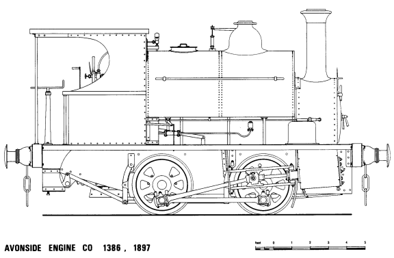 During 1897 and 1898 the Avonside Engine Co Ltd constructed two 0-4-0 outside cylinder saddle tank locomotives to their order number 940, the works numbers being 1386 and 1387. After the reorganisation in the 1880's which resulted in the cessation of main line locomotive construction, the emphasis was directed to industrial types of which these two were typical examples. Basically 1386 and 1387 were Avonside class 'SS' locomotives, but not entirely; for whilst the boiler, wheels, bunker and cab were of standard 'SS' form, the cylinders were class 'B2' type and the frames and saddle tanks were 'specials'. Despite the fact that both locos shared the same order number there were a few minor differences, the most notable being a difference in boiler feed arrangement - 1387 was fitted with two Giffard No. 5 injectors with 1386 having one injector and one crosshead feed pump.