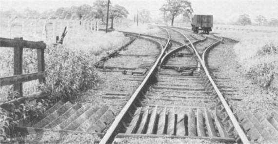 The layout at Cottingwlth in June 1950, looking north, showing the siding into the Royal Air Force depot which at that time was a sub‑unit to No.93 Maintenance Unit at Acaster Malbis. (K.P. Plant)