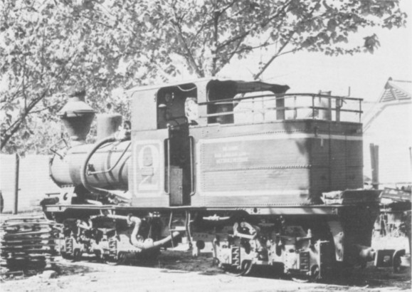 Frank Jux's photograph of number 2, EPPO, a 70cm gauge Schwartzkopff (8782), brings to life the catalogue illustration on page 54 of RECORD 24. This locomotive was one of two of this type we located at Tjoekir Factory, the other (Schwartzkopff 8458) carrying running number 1. On these locomotives two inside cylinders (on the inner end of each power bogie) drive a central shaft on each bogie and these in turn are connected to each axle by chains. Both locomotives were cold but serviceable and after we had spent an unrushed half-hour inspecting them we were firmly led to the factory gate without seeing rivet or nut of anything else!