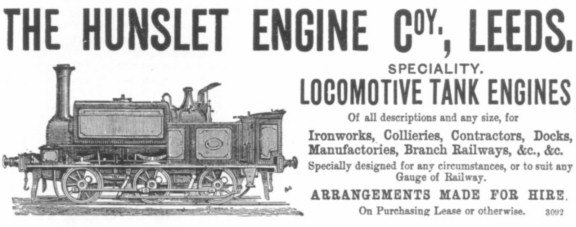Hunslet featured their standard six‑coupled design in this advertisement which appeared in the issue of "Engineering" dated 7th April 1882. (copy courtesy R. Martin)