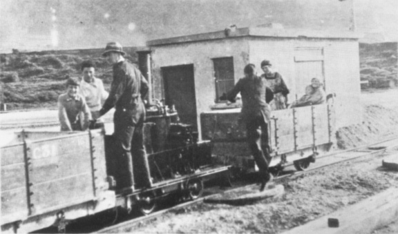 During the next few years visitors to the Darbishire's house (Plas Mawr) at Penmaenmawr would enjoy a tour of the gardens in two or three open wagons behind REDSTONE. But in 1920, when Stephen was appointed Quarry Manager at Trevor, he moved home to Trevor and sometime in 1921 REDSTONE went along too. It next turned a wheel the following year, not in the garden but at the quarries where it went for trials. A shorter chimney was fitted to enable it to pass under the mill hoppers but, as Mr Darbishire remarked, "it was only a small toy of an engine and extra weight had to be added to prevent the wheels from slipping." It was rather prone to derailment on curves as it had no springs, and lack of an ashpan caused a few anxious moments when it was tried out a few weeks later on the wooden pier at the foot of the incline from the quarries. REDSTONE's success with runs of four 10‑ton wagons normally handled by fourteen men was a satisfactory demonstration of the value of locomotive traction, and the Company then proceeded to purchase a number of petrol locomotives for this lighter traffic. (The "main-line" was already worked by steam locos at this time.)