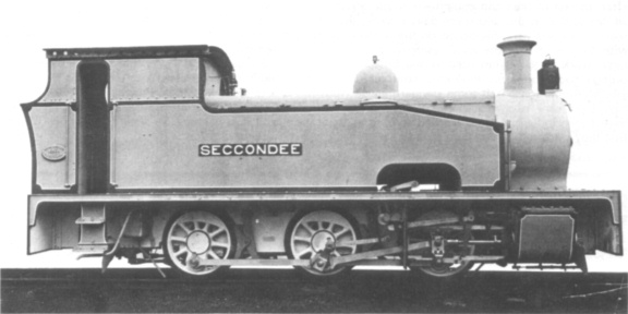 An official photograph of Hudswell Clarke 1551 of 1925, one of McAlpine's rather unusual 3ft 6in gauge side tanks, their No.60. It was the first of eight ordered by McAlpine for the construction of Takoradi Harbour in the Gold Coast. The name displayed was painted on the negative but was not carried by the locomotive: Seccondee was the Gold Coast port to which this batch of locomotives was despatched. It is thought that the box structure along the tank top is a very large tool box. (collection R.N. Redman)