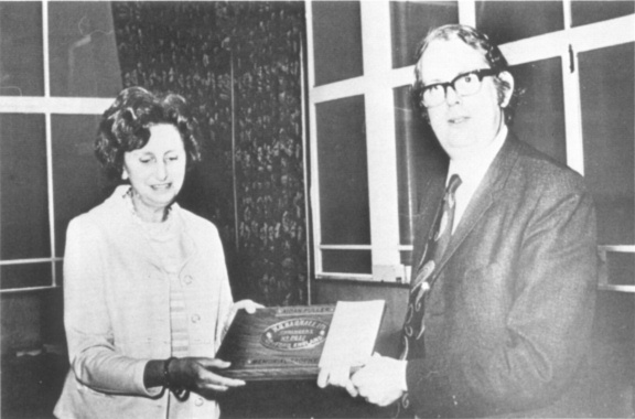 Joan Fuller presenting the first prize to M.J. Fox on 27th April 1974. (A.N.H. Glover)