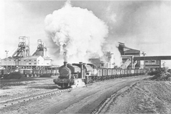 First Prize M.J. Fox This is an excellent picture for both its technical and pictorial content. The locos are shown working hard and the atmosphere generated by the blasts of smoke from both engines adds a great deal. The line of coal wagons, the lorry on the right and the pit head gear on the left, all in good positions, are helped by the darkened sky to give impact. Another good feature is that the train has somewhere to go before it reaches the edge of the picture.