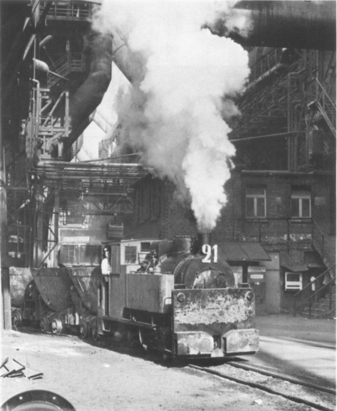 Stahlwerke Röchling-Burbach GmbH, Völklingen, Saar, West Germany, 25th September 1972. 785mm gauge 0‑4‑0 side tank 21 (Krauss 5143 of 1903) hauling slag ladles near the blast furnaces. (B. Rumary)