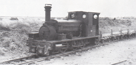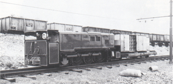 On a normal day three narrow gauge saddle tank locomotives (two 0‑6‑0 and one 0‑4‑0) would be in steam, stabled in the small corrugated top shed. The others, one of each type, were kept in the large building which had one road for spare standard gauge locomotives (which worked for a week continuously), and one for the 3ft gauge locomotives. The narrow gauge 0‑6‑0 saddle tanks hauled trains to and from the quarries and the 0‑4‑0 saddle tank shunted at the works. Occasionally the latter worked to the quarries when there was an extra load of ore to bring down, but it could manage only twelve wagons, against the usual thirty-six. Six trips were made daily, three by each engine: four in the morning and two in the afternoon. The first locomotive hauled its train to the quarry loop and left it there with sprags in the wagon wheels while it collected half the full wagons from the quarry. It then waited in the other quarry loop for the second train, although if this had already arrived, the first locomotive had a clear run back to the works. The second locomotive then collected the remaining full wagons, put them in the loop, and distributed both trains of empties before returning.
