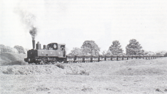 Waltham A far cry from her original haunts, the exiled NANTES (Corpet & Louvet 936 of 1903) plods through grassed over earlier workings to cross the Knipton road before describing a semicircle to the tipping dock. Photographed in 1950. (F. Jones)